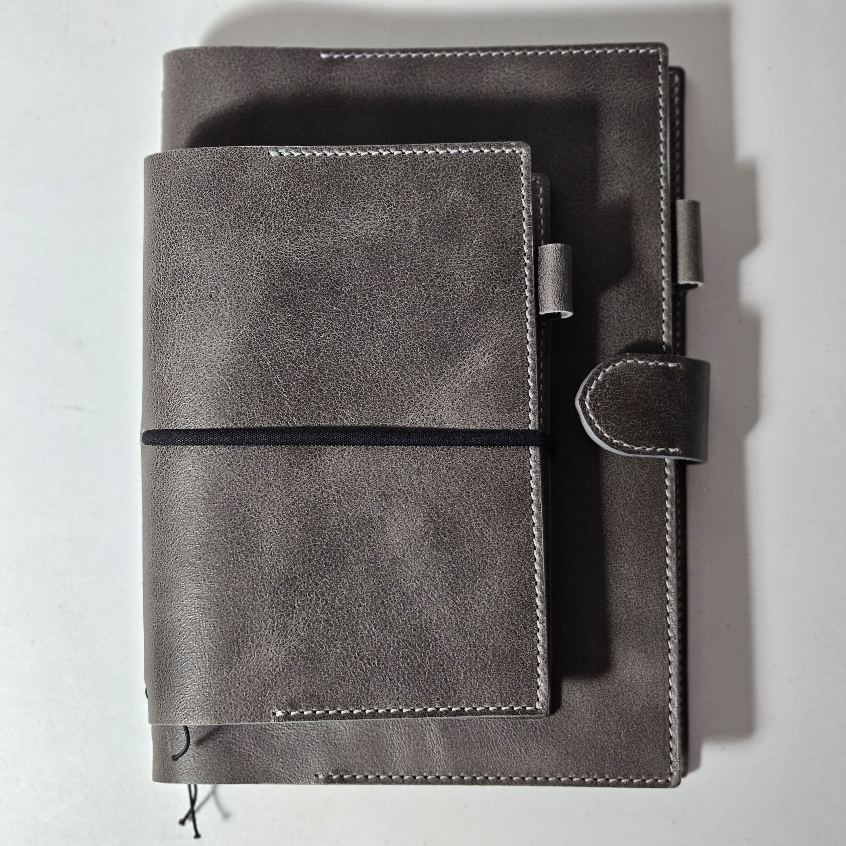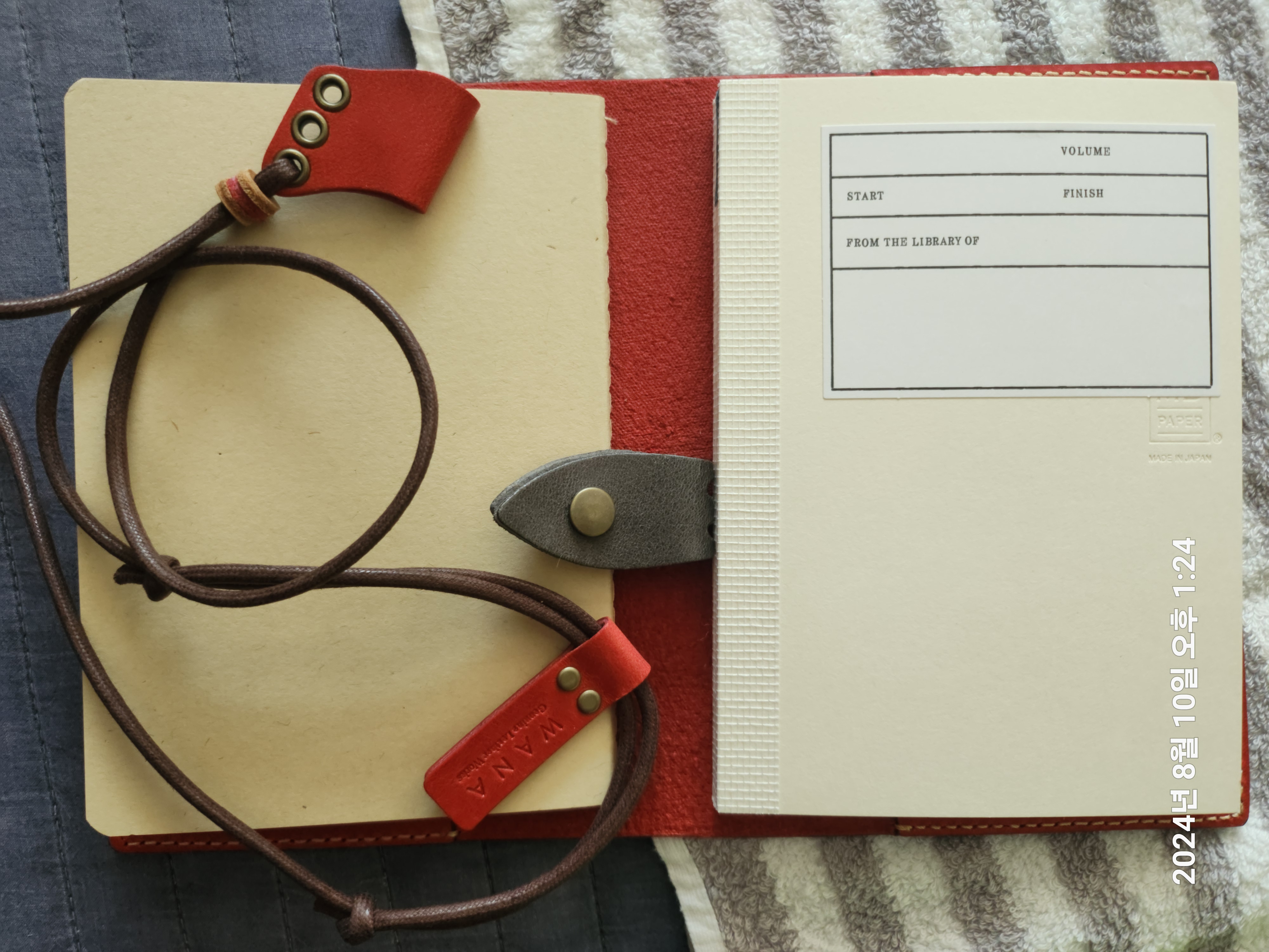 고급스러운 실제본의 와나크래프트 노트와 호치키스 제본의 차이가 보이는 책등 모습입니다.